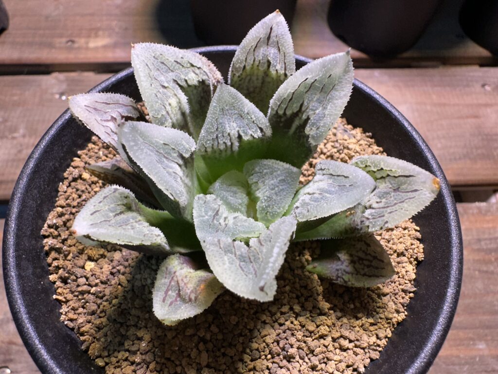 特徴 : 紫色のベースに、白くざらざらとした鉱石のような葉をしている人気種。